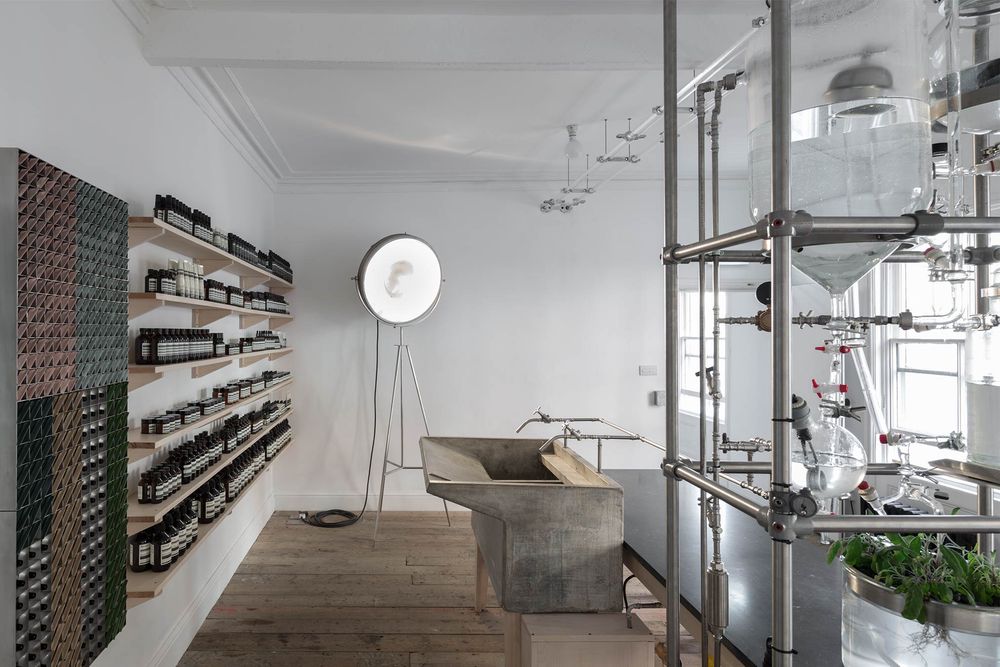 Installation for the cosmetic brand Aesop at Nottingham Rough Trade record store, England - 2014 with ciguë.